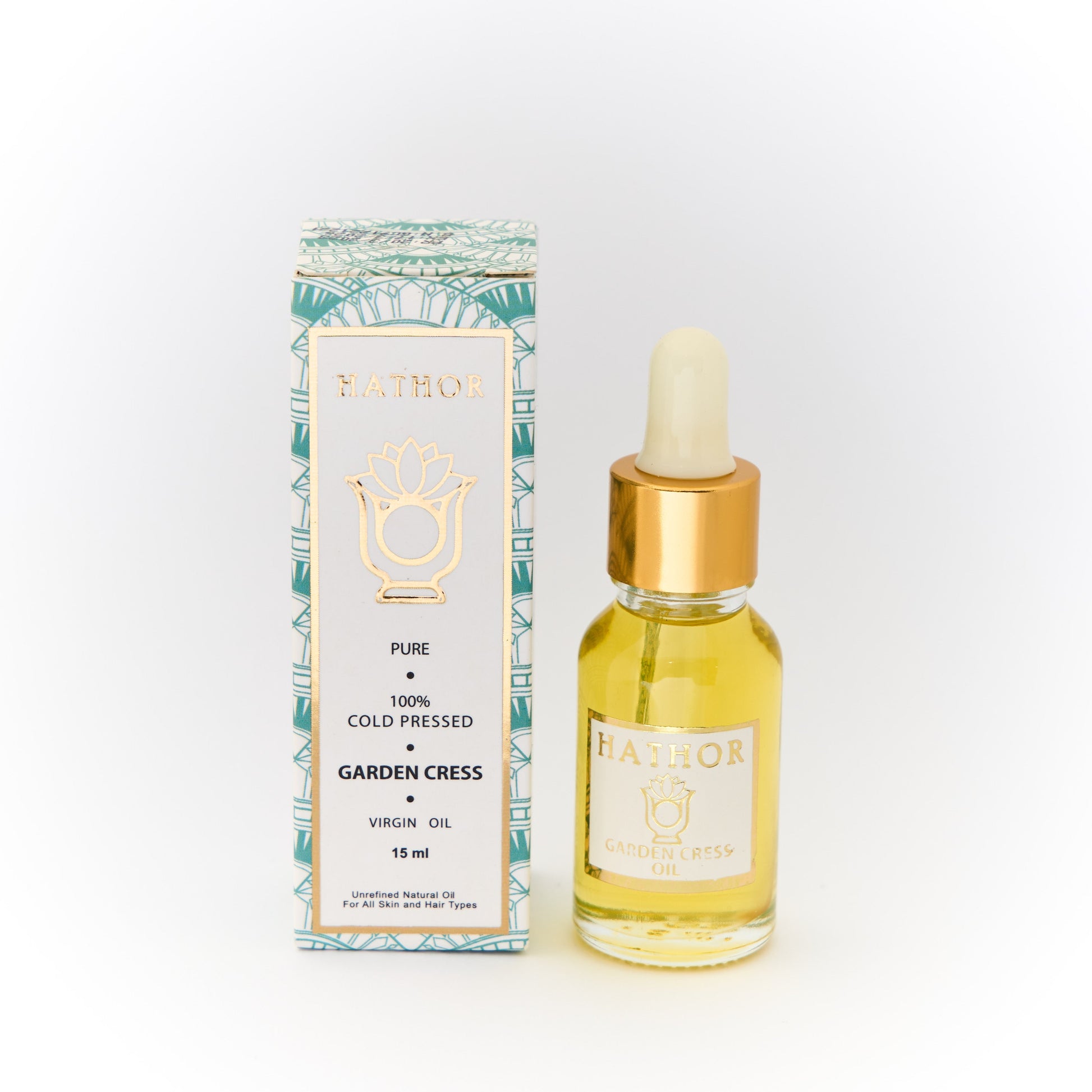 Step into a world of natural revitalization with Hathor Organics' Garden Cress Oil, a precious elixir brimming with the goodness of Mother Earth. Extracted from the nutrient-rich seeds of the garden cress plant, this versatile oil holds the key to unlocking a multitude of benefits for your skin and hair.